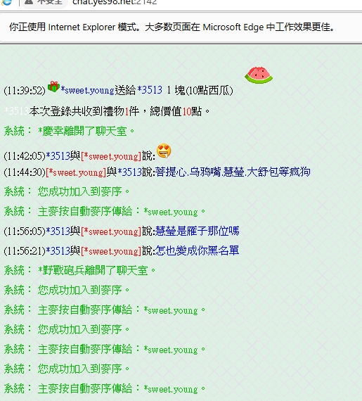 (11:08:21)*慧瑩與 說:我有病 .治不好.每天机掰痒.找男人干 系統: *慧瑩離開了聊天室。